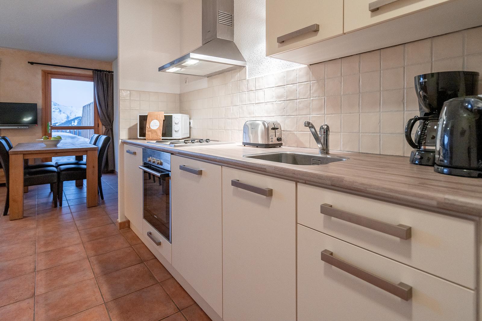 De 6-persoons appartementen beschikken over twee slaapkamers met boxspring bedden, waarvan één de ruime mezzanine is met daglicht en schitterend uitzicht en 4 eenpersoonsbedden. In de woonkamer is een comfortabele eventueel slaapbank die geschikt is als slaapplaats voor 2 personen. Uiteraard is er een televisietoestel aanwezig met diverse internationale zenders waaronder alle Nederlandse zenders. De badkamer beschikt over een ligbad met douche en separaat treft u het toilet aan. De keuken is van alle gemakken voorzien, onder andere een oven, magnetron, vaatwasser, koelkast met diepvriesvak en 4-pits elektrische kookplaat. In de woonkamer kunt u genieten van het uitzicht en loopt u zo uw terras of balkon op. In het centrale gebouw is een aparte plaats om uw ski’s veilig op te bergen.