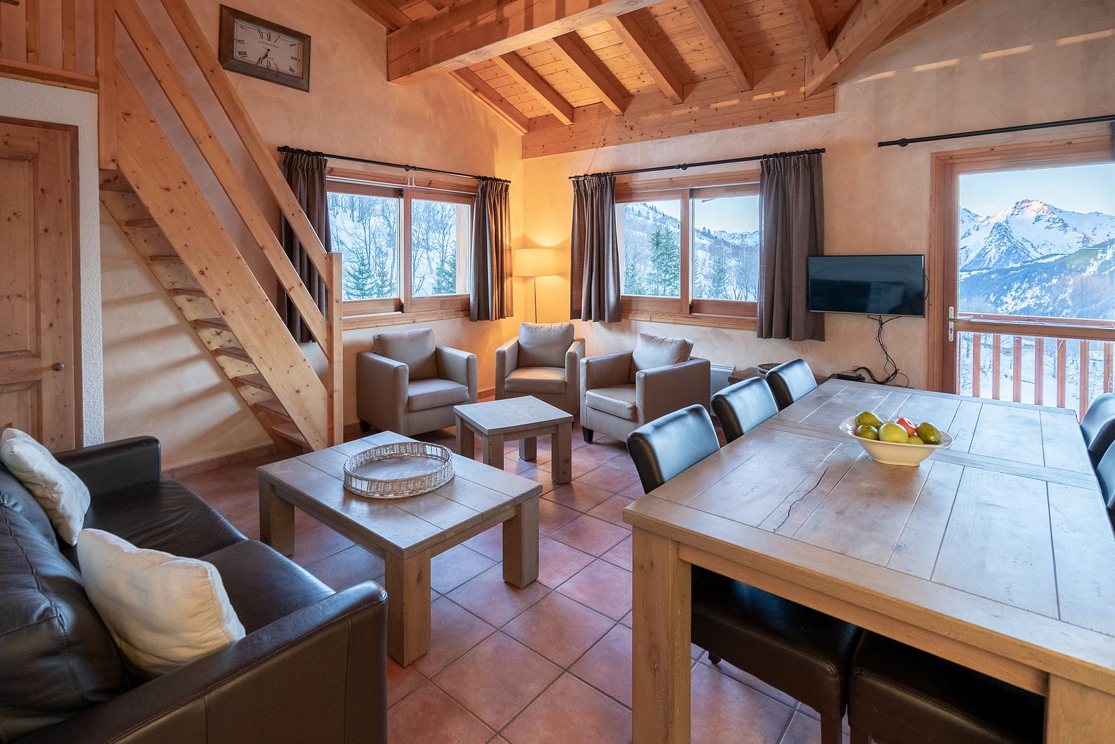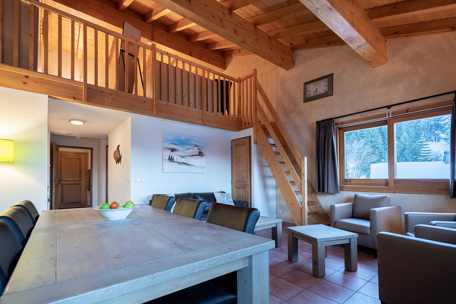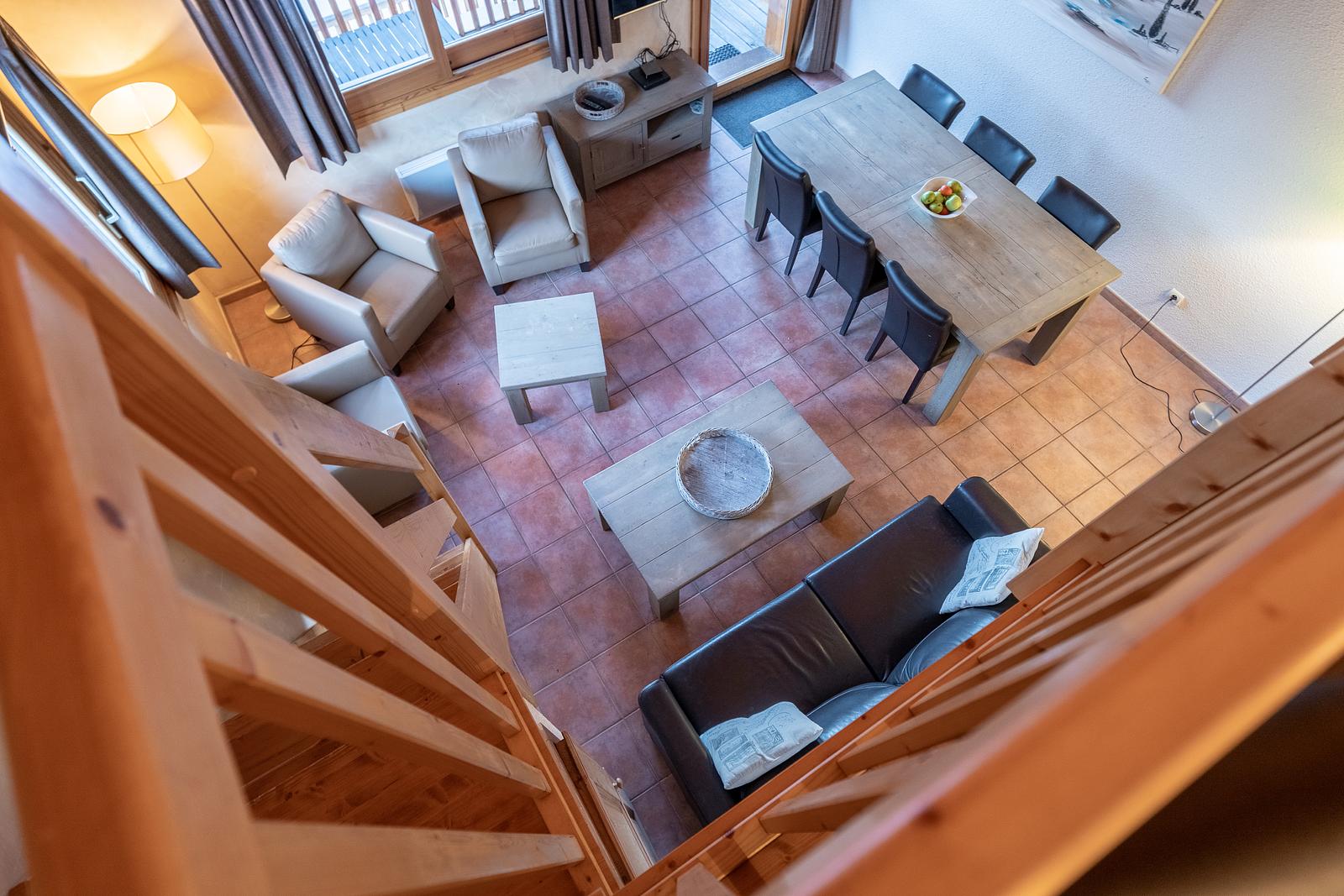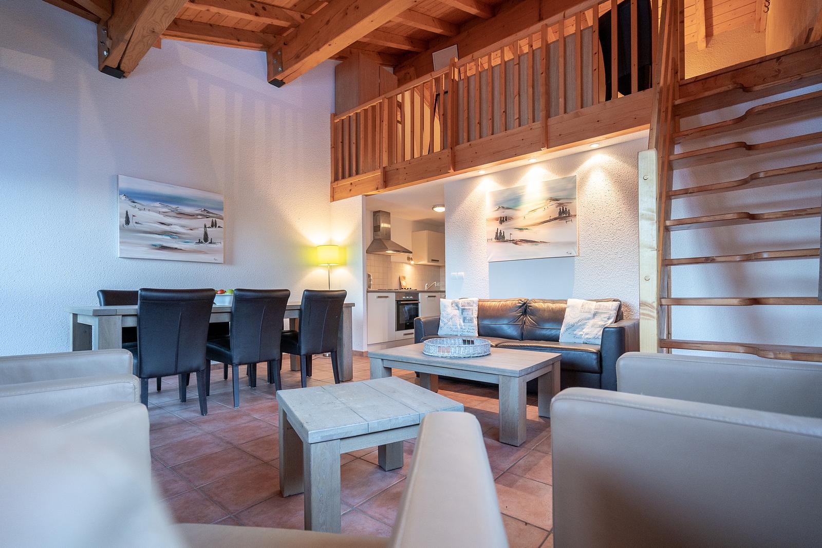 De 6-persoons appartementen beschikken over twee slaapkamers met boxspring bedden, waarvan één de ruime mezzanine is met daglicht en schitterend uitzicht en 4 eenpersoonsbedden. In de woonkamer is een comfortabele eventueel slaapbank die geschikt is als slaapplaats voor 2 personen. Uiteraard is er een televisietoestel aanwezig met diverse internationale zenders waaronder alle Nederlandse zenders. De badkamer beschikt over een ligbad met douche en separaat treft u het toilet aan. De keuken is van alle gemakken voorzien, onder andere een oven, magnetron, vaatwasser, koelkast met diepvriesvak en 4-pits elektrische kookplaat. In de woonkamer kunt u genieten van het uitzicht en loopt u zo uw terras of balkon op. In het centrale gebouw is een aparte plaats om uw ski’s veilig op te bergen.