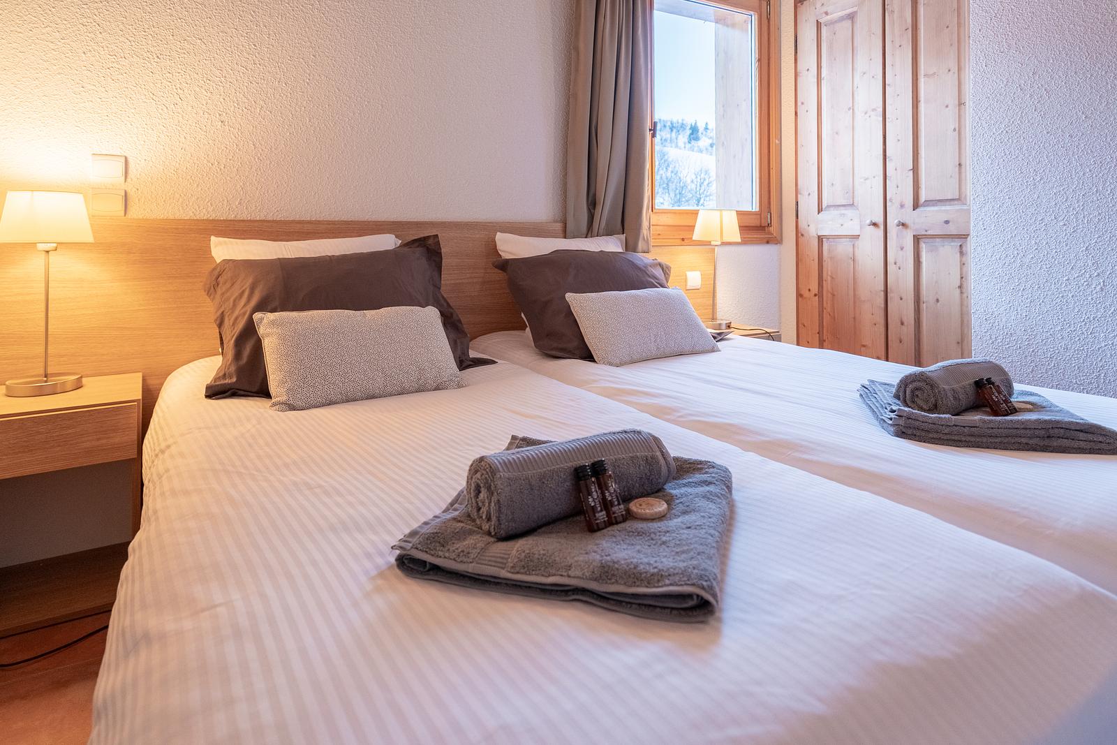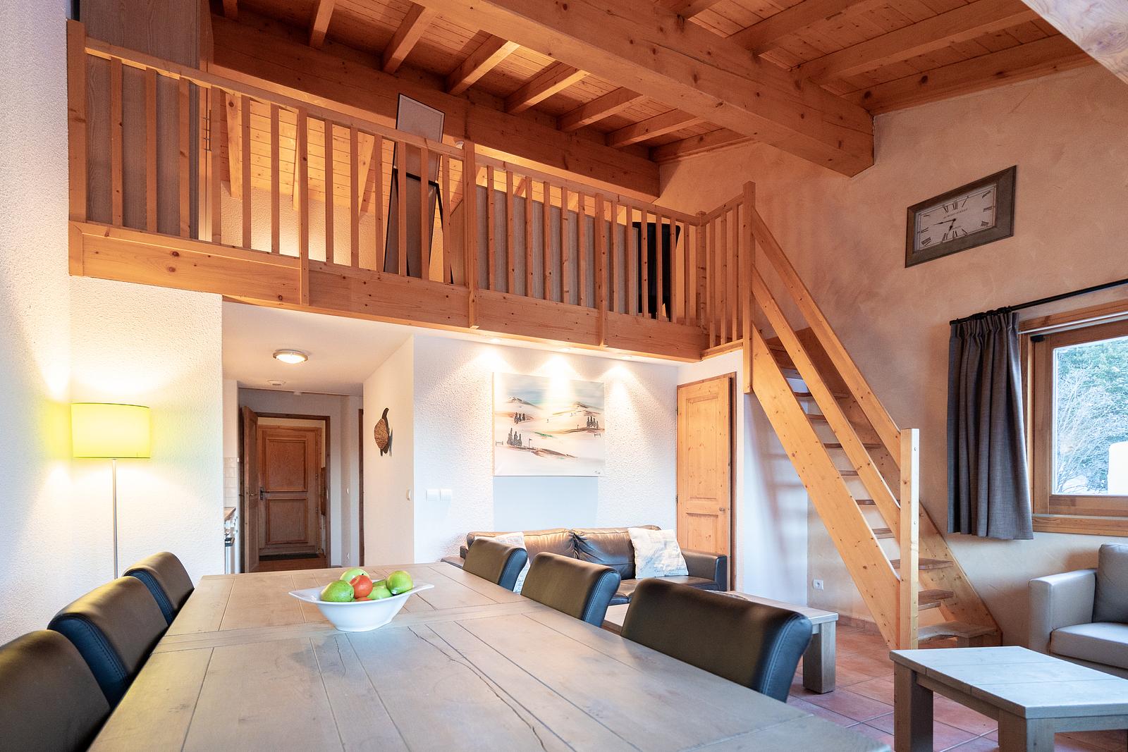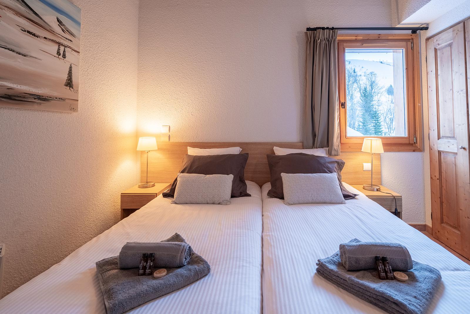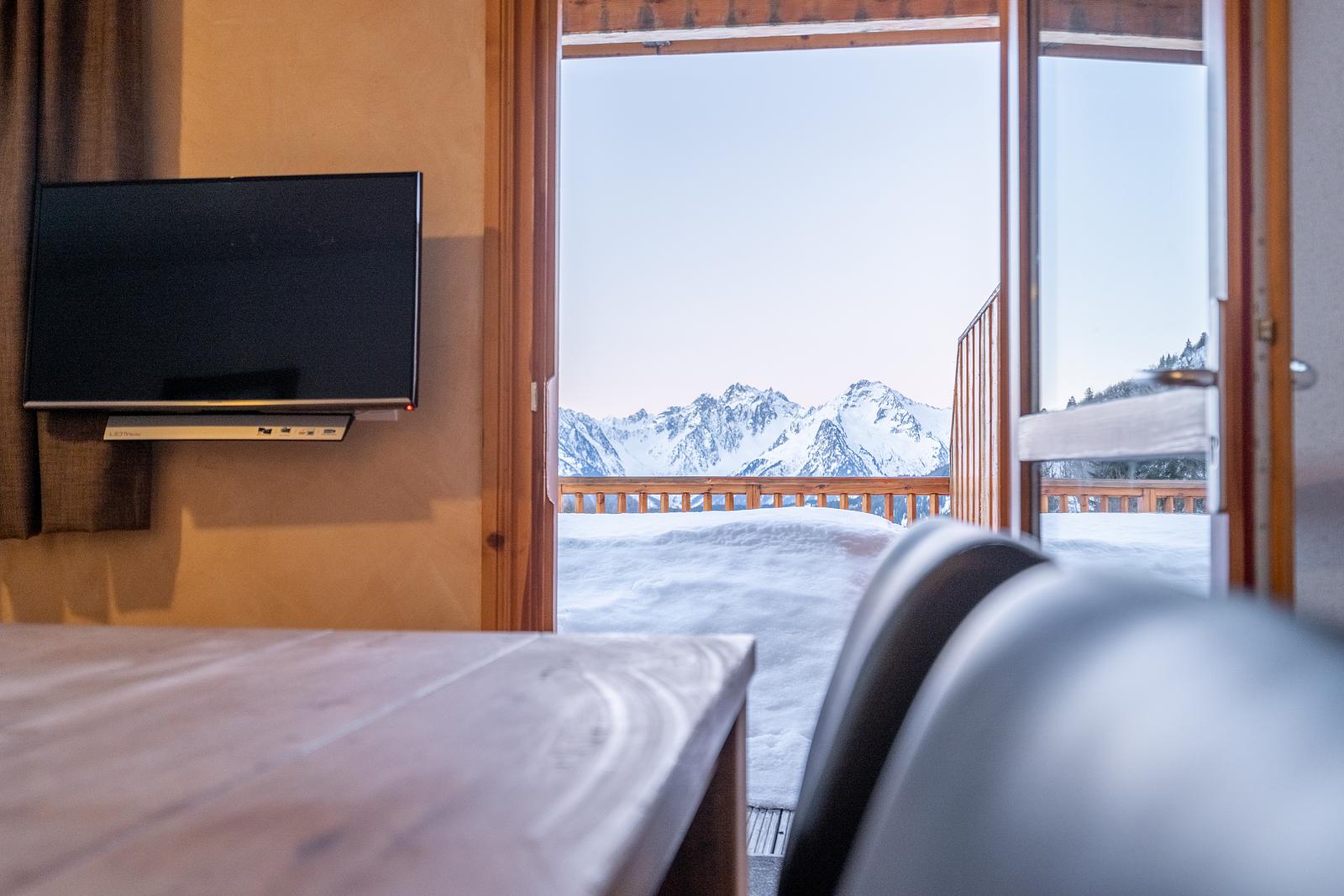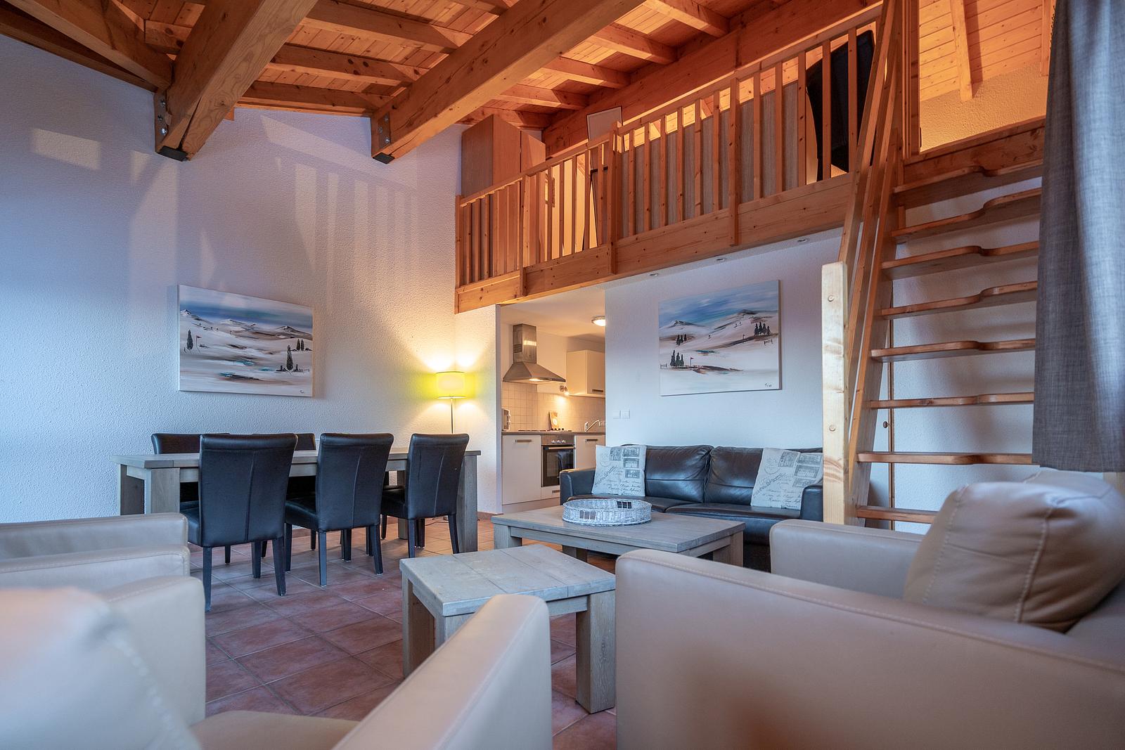 De 6-persoons appartementen beschikken over twee slaapkamers met boxspring bedden, waarvan één de ruime mezzanine is met daglicht en schitterend uitzicht en 4 eenpersoonsbedden. In de woonkamer is een comfortabele eventueel slaapbank die geschikt is als slaapplaats voor 2 personen. Uiteraard is er een televisietoestel aanwezig met diverse internationale zenders waaronder alle Nederlandse zenders. De badkamer beschikt over een ligbad met douche en separaat treft u het toilet aan. De keuken is van alle gemakken voorzien, onder andere een oven, magnetron, vaatwasser, koelkast met diepvriesvak en 4-pits elektrische kookplaat. In de woonkamer kunt u genieten van het uitzicht en loopt u zo uw terras of balkon op. In het centrale gebouw is een aparte plaats om uw ski’s veilig op te bergen.